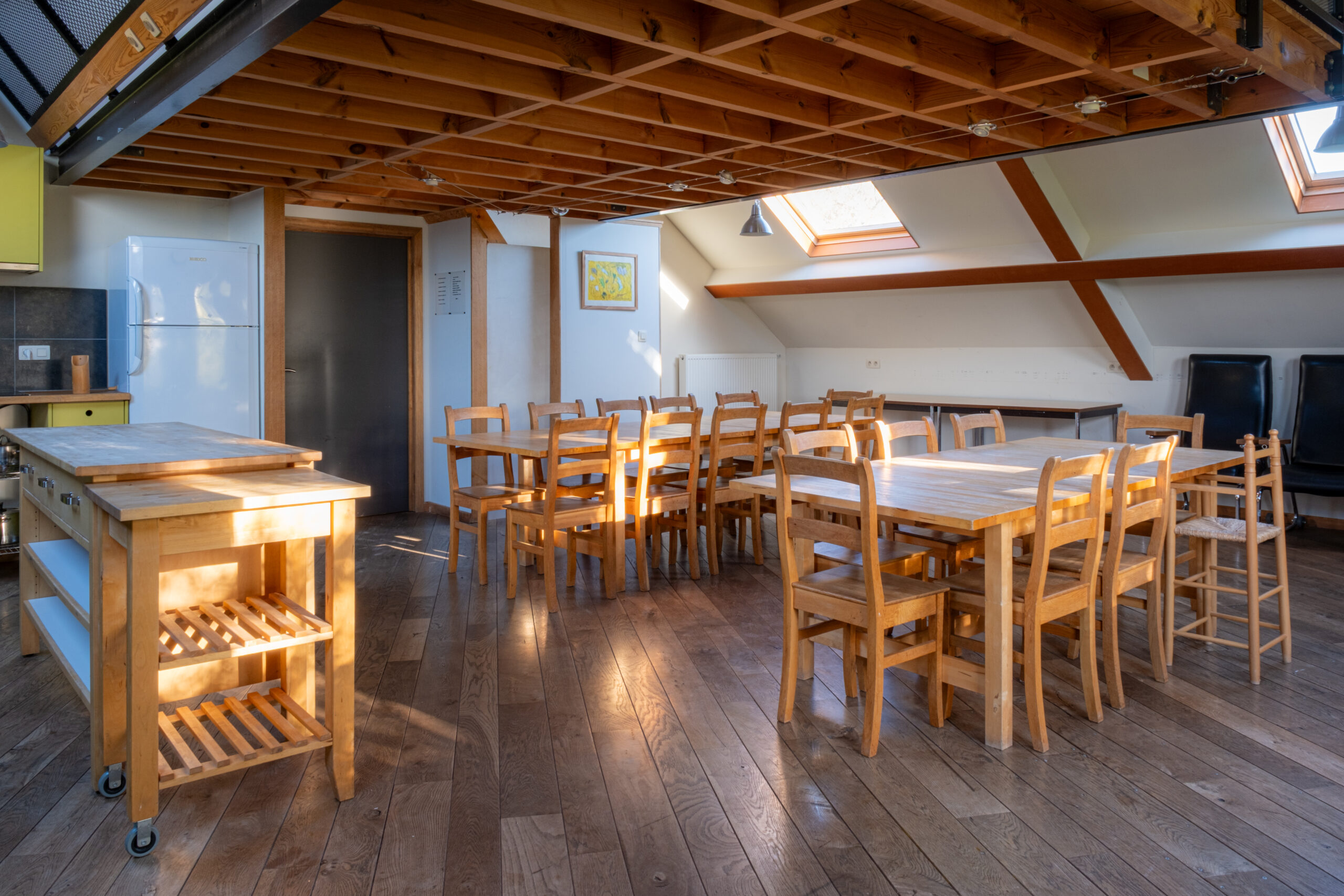 Le gîte de La Gatte d\'Or, totalement indépendant, il peut accueillir 20 personnes. Situé à l’étage du bâtiment, ses adaptations aux personnes handicapées avec notamment un ascenseur leur permettent de circuler très facilement. <br><br>(Photos : Thomas Dubois - <a href=\"http://www.ozmoz.be\">www.ozmoz.be</a>).
